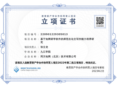 近日,教育部公布了2022年第一批和第二批产学合作协同育人项目立项名单,公司共有2项项目分别获批第一批和第二批立项教育公司李思思教师申报的《“赛教融合”背景下高校学前教育专业音乐课程模式的构建》、张立龙教师申报的《基于知网研学软件的师范生论文写作能力培养研究》项目获批立项。