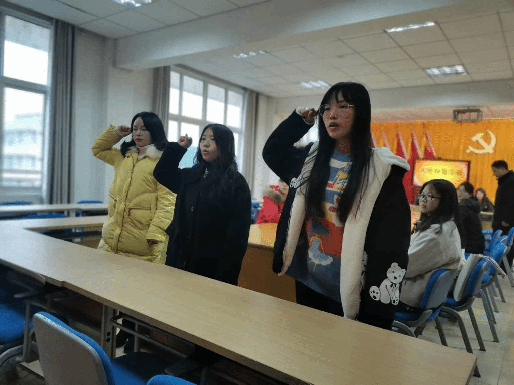 其次,易明倩同志首先宣读转正申请,向大会报告一年预备期的学习、工作和生活情况,易名倩的入党介绍人向大会报告了她一年来的表现,最后支部正式党员进行了投票表决,一致同意易名倩转为正式党员。