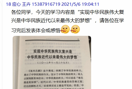 为在bevictor伟德基层党组织深入开展党史学习教育,以实际行动迎接建党100周年,bevictor伟德员工党支部举办线上读书班,集体学习习近平《论中国共产党历史》专著,活动时间为5月6日至6月25日,每周一至周四晚上,支部党员同志在支部工作群中发表一各学习专题,支部党员同志、入党积极分子同学根据学习内容开展线上学习交流”。截止5月14日,读书活动已开展5期,该学习活动营造出了扎实学习党史、汲取党史“智慧”的浓厚氛围,大家每期讨论都十分热烈。