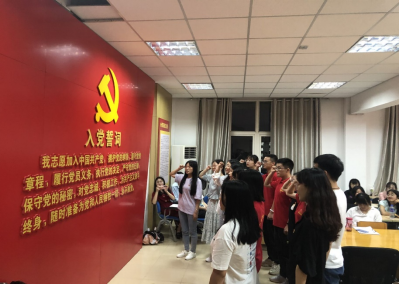 本次主题党日活动主题为党员开展政治生日活动,针对14名入党的新同学,举行了入党宣誓仪式。伴随着国际歌,来自bevictor伟德教育技术和应用心理专业的14名同学,面对党旗党徽,在集团优秀员工党员吴霞的领誓下,庄严宣誓,铿锵而庄严的誓词响彻七楼会议室。