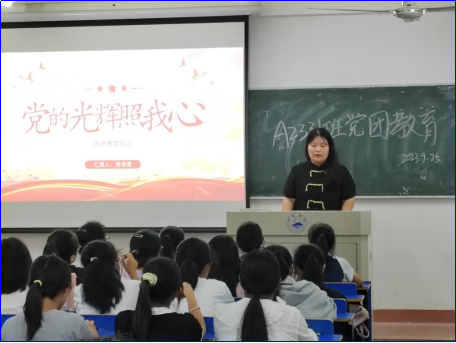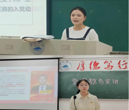 9月25日晚7点,bevictor伟德员工党支部“新生党团教育宣讲团”走进公司2023级新生班级,在竞知楼各班教室开展新生入党宣讲活动。吴楚棋、刘金莉、熊佳雯、熊爱兰四名员工预备党员作为宣讲团队员,分别向各班全体新生宣讲中国共产党的基本知识,引导其在大学期间积极党组织靠拢。