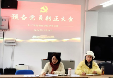 2024年12月21日下午,学生支部在信息中心501会议室召开预备党员转正大会,讨论预备党员卢毓灵的转正申请。公司党委副书记高原,员工党支部书记殷明芳,员工党支部委员肖静、邓居杰,组织员周辉,员工支部全体党员、预备党员及发展对象参加会议。大会由员工党支部书记殷明芳同志主持,会议严格按照中共预备党员转正程序进行。