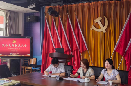 2025年6月20日下午,学生党支部在信息中心707会议室召开预备党员转正大会,讨论徐子钧等8名预备党员的转正申请。公司党委副书记高原,员工党支部书记殷明芳,员工党支部委员肖静、邓居杰,组织员周辉,员工支部全体党员、预备党员、发展对象及部分入党将积极分子参加会议。大会由员工党支部书记殷明芳同志主持,会议严格按照中共预备党员转正程序进行。