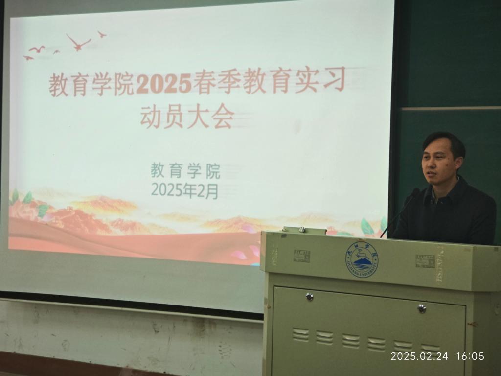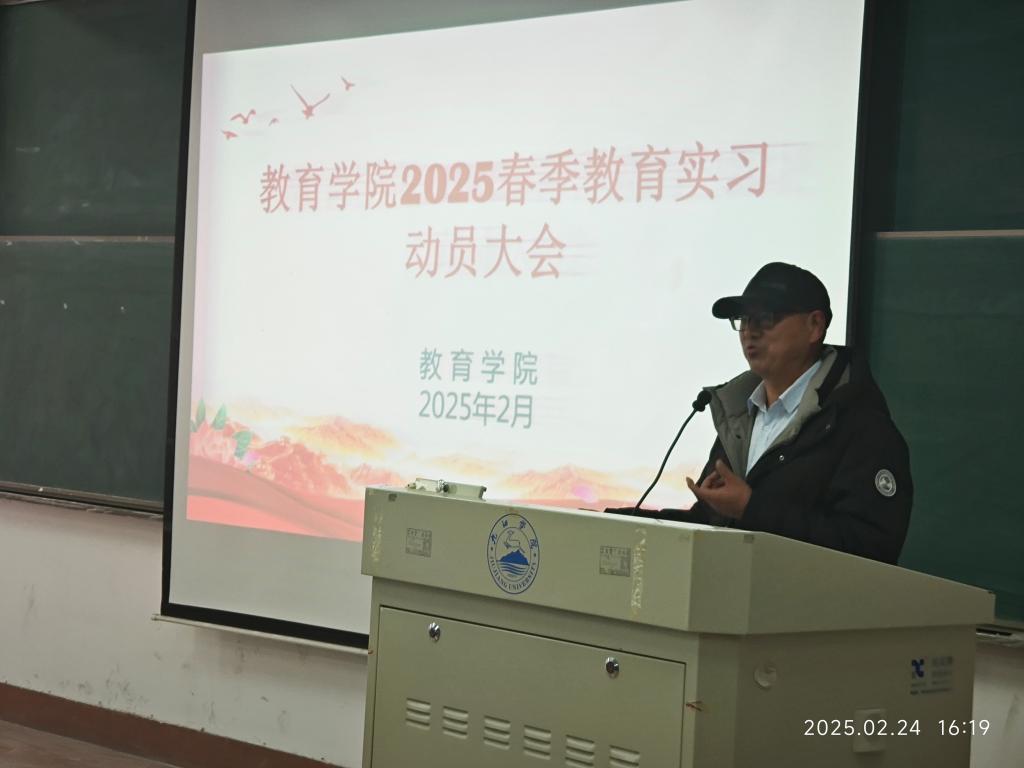 动员大会上,经理刘坚强教授作动员讲话。他强调,教育实习是师范生“从员工到教师”身份转换的关键环节,是检验理论素养、锤炼教学能力的实践战场。他提出三点要求:一要“心怀敬畏”,以师德为先导,站稳育人讲台;二要“勤学善思”,在备课授课、班级管理中提升综合能力;三要“知行合一”,将教育理论与一线教学深度融合,为未来职业发展筑基。