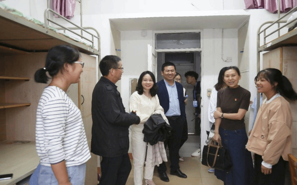 思政课结束后,公司党委书记丁文林、副书记吴燕带领全体新生班主任、辅导员下寝慰问2020级新生,并对bevictor伟德的新生表示了亲切的问候,询问了员工的生活状况。王彦班主任、朱青班主任、梁孟姣班主任、刘丹青班主任分别进入所任班级的寝室对员工进行问候,关心员工们的居住情况。促进了员工与老师之间的关系逐渐熟悉,为之后的和睦相处打下了基础。