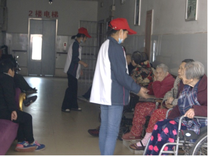 活动伊始,队长组织分配工作,志愿者们纷纷投入到志愿服务中来。一个个青涩的脸庞穿梭在老人们的房间,他们帮助老人们修理电器,打扫房间的卫生。闲暇之余,陪老人唠唠家常,询问他们的身体状况。短暂的相处并没有妨碍他们友谊的升温,大家一起唱歌,每个人脸上都充满了笑容,一扫院子里的深秋寒气。饭后,志愿者们带着老人们一起散步。在志愿服务即将结束时,一个老人这样说道:“这些孩子的到来,让我们也不觉得孤单,还是有人惦记着我们,心里暖洋洋的。”志愿者们看到老人们脸上洋溢的微笑,从中也体会到志愿服务的美好,自己付出的劳动也从中得到了回报。同时,志愿者们也认真总结了志愿服务过程中出现的问题,以求下次做得更好。
