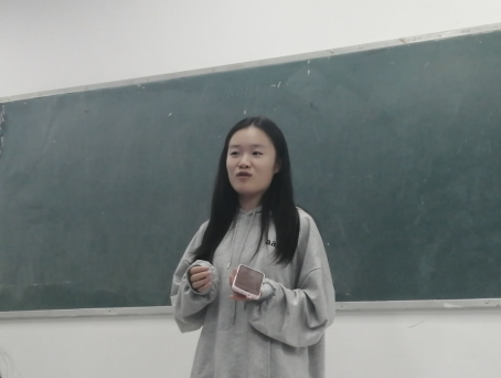 图中是A1911班朱旭楠同学,她讲述的内容是“网络诈骗”,从介绍什么是网络诈骗开始,再从它的常见手段和防骗技巧展开讲述,加深同学们对网络诈骗的了解,同时结合实际案例和个人经历进行解说。