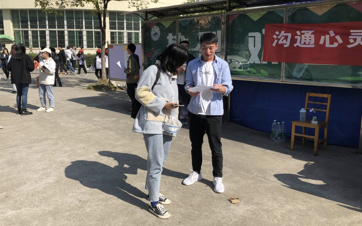 为帮助公司员工更好地从心理学角度上认识自己,也为了提高大家对心理学的认识、破除对心理学的误解,11月11日下午,公司18级应用心理学专业于三食堂广场举行了以“敞开心扉,融入校园”为主题的义务心理咨询活动。本次活动在班主任黄士老师的指导下A1841班同学全员积极开展。