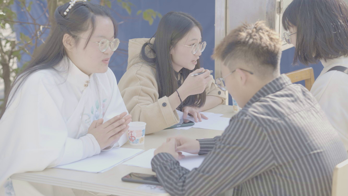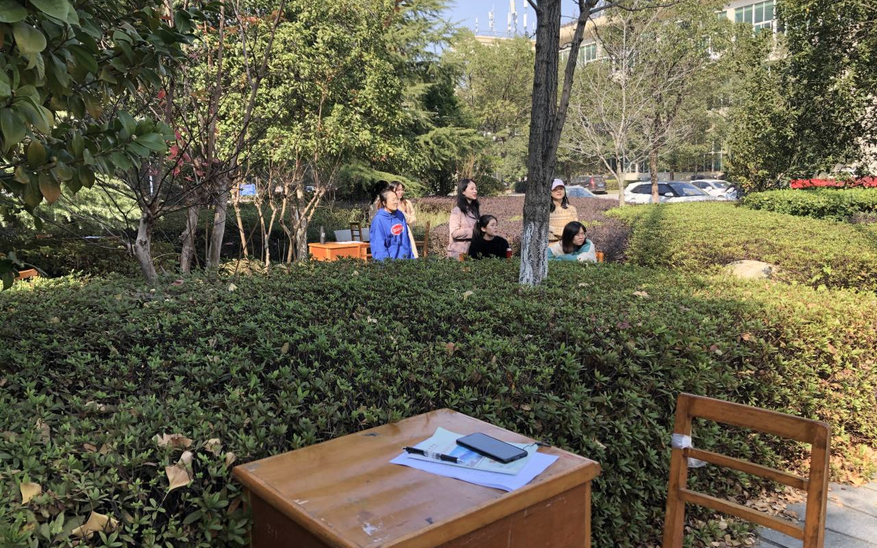 咨询组在广场旁小花园内错落布置着桌椅,既是在热闹的人流中辟出了一片安静的小天地,也是利用葱郁树枝的交相掩映隔绝了他人探寻的目光,保障了来参与心理咨询的同学们的隐私。