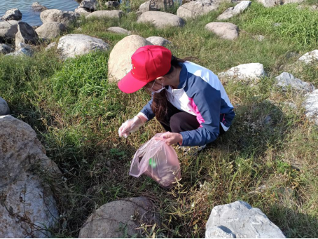 随着时间的推移,志愿者手中的垃圾袋越来越鼓,额头上沁出了一层薄汗,但他们的脸上却洋溢着劳动的快乐!在明媚阳光的照射下,青年志愿者们一起合影留念。
