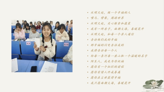 “读书会结束之后,我依然沉浸在思考中。看着落叶归根,看着人群集散,看着万物生灵,如果它们也有这样的疑惑,我们又能向谁追问求知呢?其实,不论怎么样,我们只要坚定信念,谁都是主角,谁都是真实的。因为我们的在成长过程中的每一份付出,每一滴汗水都是发自我们内心的。真理不就是需要我们这样踏踏实实的,无所顾忌的去探寻吗?”