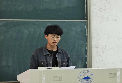 随后由寒假“在线家教志愿服务活动优秀服务标兵”金新琦同学发言,他表达了自己对于此次在线家教志愿服务活动的看法和感受,在重重困难下也收获颇深,但他并没有放弃,而是积极主动地去解决问题,与家长、老师主动的沟通,及时解决问题,并在此次家教活动中取得了一些成就,最后表达了对老师、领导的感谢,感谢他们的培养和支持。
