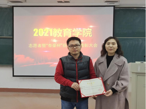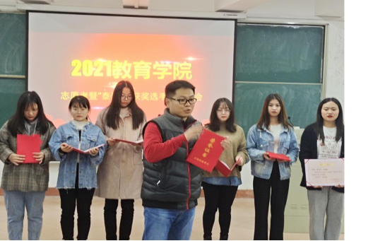 家教志愿在线服务活动优秀指导老师——实验实训中心蒋枫霆主任发表获奖感言,他说到“同学们一定要珍惜每一次比赛的机会,以赛促学、学赛互益,要以饱满的精神和认真的态度投入到学习比赛中,因为只有付出了才有可能得到回报。”