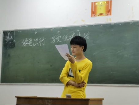 为深入学习贯彻生态文明思想,进一步响应、倡导绿色低碳生活新风尚,增强教院学子绿色环保意识。5月20日晚7点,A2032班于竞知楼105教室开展了以“低碳出行,绿色生活”为主题的宣传活动,由宣传委员徐云鹏担任主讲人。
