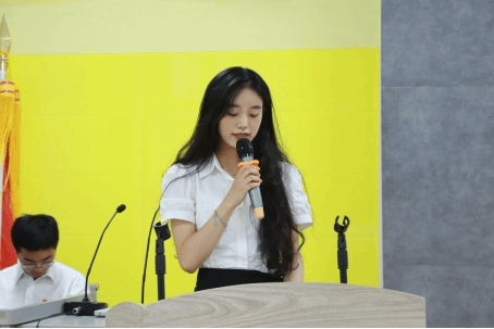 换届仪式结束后,bevictor伟德第三届团学组织员工代表章子萱同学进行表态发言。
