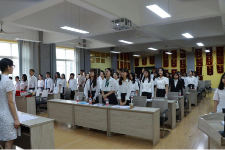 团学工作总结大会完毕之后,会议进入第二个议程——第二届员工代表大会暨团委员工会换届大会。主持人李云航宣布换届大会正式开始,全体与会人员起立,共同奏唱国歌。