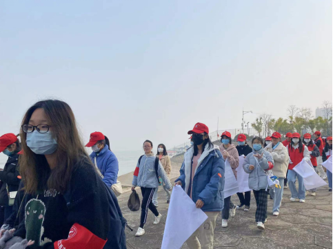 志愿者们7点10分在北门集合并出发,于8点30分到达滨江健康公园与各公司会合,社会组织爱心服务队安排志愿者们按公司站好。活动伊始,各公司代表人轮流进行活动前的发言,加强同学们对本次活动背景知识的了解,青志服务队部长邹燕微讲到:保护长江,是每个华夏儿女的义务,我们要勇于承担社会责任,保护长江生态系统,为净化长江水质做出自己的贡献。发言环节结束后,志愿者们热情高涨,领取环保垃圾袋和手套后,他们从33号闸口徒步长江岸,观察拍摄水环境。