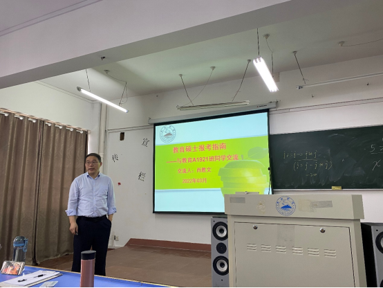 肖胜文老师为讲座内容做了精心的准备,他结合应用心理学的专业特点,从考研有哪些基本途径、如何结合自身优势与不足合理选择考研方式、怎样认识和报考教育硕士等方面为在座的同学做了详尽的介绍。