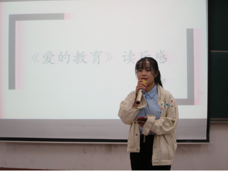 首先,袁颖慧、陈鑫鑫、陈妍、魏苗苗、吴恩茜、周睿如、师转霞、韩裕婷同学依次上台发言,分享了自己对《爱的教育》的理解与感受。同时,同学们也结合了小学教育专业,以及对教师职业的发展,纷纷提出了自己的独到见解。