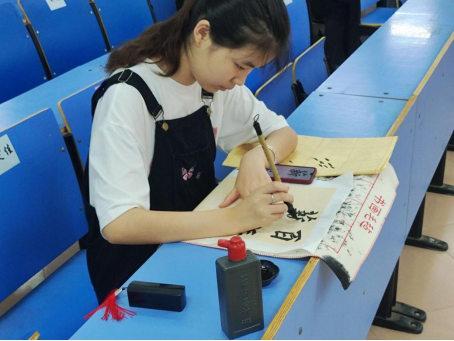 启动仪式后,主持人宣布比赛正式开始,各个选手有条不紊地完成自己的作品。在书写过程中,选手们专心致志,一笔一划中尽显师范生素养,一撇一捺间书写精彩人生,一横一竖间传承中华文化。