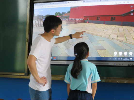 首先进行的是科普环节,团队成员向小员工们发放了科普宣传彩页和小礼品,为同学们讲解VR相关知识、人工智能在教育和生活中的应用,带领同学们体验团队自制的VR全景图等方式,在科普和答疑过程中,增加了同学们对人工智能及VR相关知识的了解。