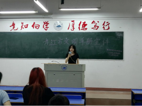 通过此次学习,同学们纷纷表示要按照《九江市民文明手册》标准做好各项工作,争做文明风尚的传播者、文明行为的践行者、文明创建的引领者、志愿精神的传承者,将社会主义核心价值观牢记于心,付诸于行,从自身做起,同创全国文明城市,共建幸福美好九江。