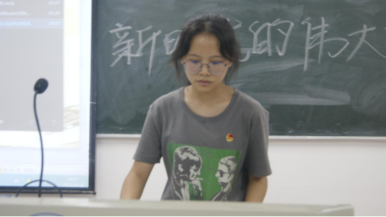 活动尹始,各班主讲人请同学们全体起立,齐唱中国共青团团歌,而后向同学们介绍了党的十九大报告的主要内容。在面对百年未有之大变局和突如其来的新冠肺炎,我国人民坚定不移地学习贯彻习近平新时代中国特色社会主义思想,坚持党的领导地位。随后,主讲人分别从中国经济实力迅速上升,全面建成小康社会,百年征程的意义这三个内容讲本次团日活动。中国现已经跃升成为世界第二大经济体,经济实力迅速上升,经济地位空前提高,这是党和人民努力奋斗来的。中国已经全面建成小康社会,如期告别绝对贫困,主讲人举了广西山区脱贫的例子,农民发展本地特色产业,打造产业链,从而实现脱贫致富的目标。