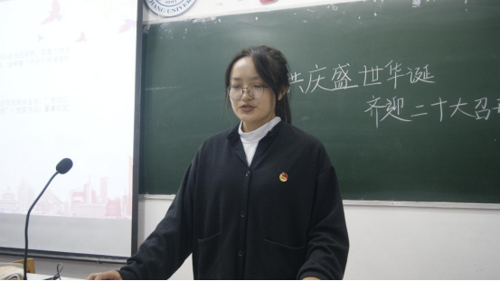 活动伊始,团支书请全体成员起立,齐唱中国共产主义青年团团歌。随后,团支书带领大家回顾了历届中国共产党全国代表大会的精神要点,使同学深刻感受到了伟大的建党精神和中国力量,更充分认识到了习近平新时代中国特色社会主义思想的实践伟力和我国社会主义制度集中力量办大事的独特优势。