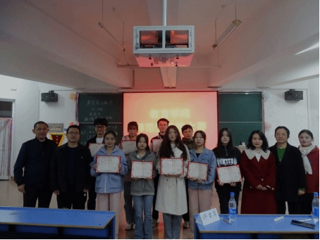 最后主持人宣布比赛结果。侯轶清同学荣获一等奖,冉露、胡塬培两位同学荣获二等奖,程梓薇、魏佳瑛、钟金燕三位同学荣获三等奖,黄洁、刘荷芳两位同学获得优秀奖。