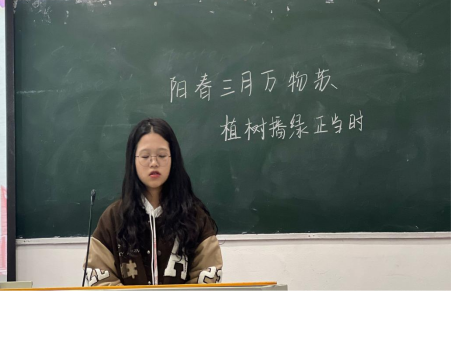活动伊始,各班团支书请全体同学起立,齐唱中国共青团团歌。团日活动在同学们齐唱完团歌后正式开始。各班主讲人向同学们介绍了植树节的由来,给大家讲述了3·12植树节背后的历史故事以及其蕴含的内在意义让同学们认识到了植树节不仅是功在当代,更是利在千秋。多植树不仅可以提高空气质量,还可以美化城市、改善气候,为后人留下一个健康、美好的家园。老员工应该从当下森林面积大幅度减少、地球之肺危在旦夕的现状中应该吸取教训,积极参与志愿活动,积极参与植树造林。为地球母亲播下一颗绿,种下一颗希望,长出一片未来。