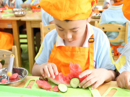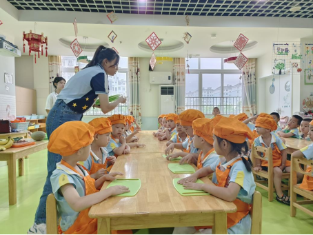 6月20日下午,公司服务队开展“夏至一起吃西瓜”主题活动,在服务队的引导下,幼儿们积极动手,用塑料刀具完成切西瓜的游戏,并以美食烹饪的形式制作西瓜拼盘,同时让幼儿学会了正确的防暑降温方法。