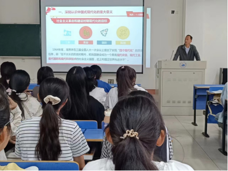 课上,王殿元指出我们正身处世界风云激荡的潮头,改革开放后的新时代让中华民族迎来了从站起来、富起来到强起来的伟大飞跃,同学们要在强国建设民族复兴新征程上,以理想者、担当者、吃苦者、奋斗者的姿态,奋进新征程,诠释新青春,创造新业绩。王殿元还结合个人学习生涯的心得体会,指导同学们要科学谋划自身的发展目标,结合世界发展趋势,找准个人在中国梦中的定位。