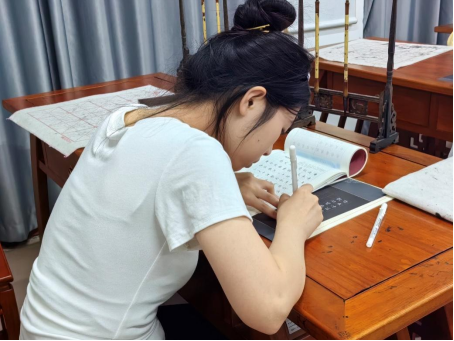 比赛过程中,选手们凝神静气,一笔一画书写有力,一张一弛舒展有度,充分展现出公司师范生过硬的教师专业素养和执笔落笔的从容。经过选手们四十五分钟的静心书写,一幅幅精美的书法作品映入眼帘。