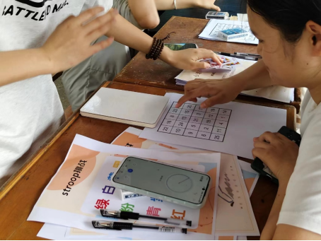 游戏环节分为脑力激荡区和宣泄压力区,包括“stroop挑战”“神奇21点”“气球传纸杯”“心理谈话”等一系列丰富多彩的活动。在最后的心理谈话环节,参与者与心理学专业的同学进行了心理问题的咨询与解答,了解了调控情绪的技巧。活动现场充满了欢声笑语,同学们在趣味活动中寓教于乐,提升了对心理健康的认识,懂得了如何关爱自己和他人,共同营造了一个积极健康的心理环境。