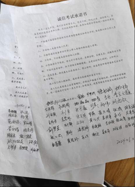 此次主题班会临近期末,各班通过这次诚信教育营造了人人讲诚信的良好风气,同学们也分享了自己的感悟和理解,纷纷表示将会保持严谨求实的学习态度,并签订“诚信考试承诺书”为期末考试做好准备。
