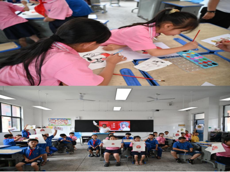 下午,志愿者们走进威家中小学的课堂,为孩子们带来了一系列精彩纷呈的课程。在德育课堂上,志愿者们通过讲述革命先辈们的英勇事迹,激发了孩子们的爱国热情和责任担当。在智育课堂上,志愿者们通过注意力训练游戏和案例讲解,提升了孩子们的注意力和规则意识。在美育课堂上,志愿者们通过戏曲进校园的活动,让孩子们感受到了传统文化的独特魅力。在劳育课堂上,志愿者们组织孩子们参与教室清扫工作,培养了他们的劳动意识和珍惜劳动成果的习惯。在体育课堂上,志愿者们带领孩子们进行健身操和手语教学,让孩子们在锻炼身体的同时,也感受到了运动的快乐和温暖。