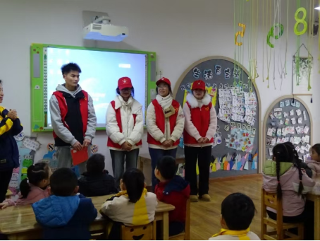 活动伊始,志愿者们抵达浔南中心幼儿园,对幼儿园的小朋友们依次进行了自我介绍,他们用亲切的笑容和温和的话语,拉近了与儿童之间的距离。