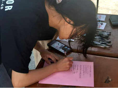 活动当天,志愿者们提前布置场地,整齐摆放好红色信纸、定制书签等奖品。参与者需在信纸上书写对母亲的祝福,或当场编辑感恩短信发送至母亲手机,完成后即可领取奖品。这一设计打破员工“爱在心口难开”的羞涩,以“仪式感”推动情感表达。“平时很少对妈妈说‘我爱你’,今天借活动机会发短信,妈妈回复说很惊喜,也对我说了‘我爱你’”,一名参与员工分享道。
