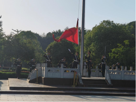 清晨的阳光洒在校园的每个角落,同学们怀着崇敬的心情相聚在庄严的国旗下,全体员工整齐列队,精神抖擞。随着一声响亮的口令,护旗手们迈着坚定而有力的步伐,护卫着鲜艳的五星红旗走向旗杆。在雄壮的国歌声中,五星红旗缓缓升起,迎风飘扬。全体员工肃立,行注目礼,响亮的唱着国歌,心中充满了对祖国的热爱和敬意。