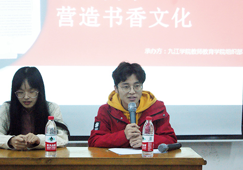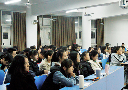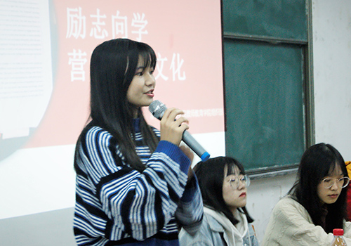 本次文化讲座以“励志向学,营造书香文化”为主题,由16级员工魏力,17级员工朱飘叶、卢佳丽、吴霞四人就关于大学如何竟知向学享受生活等一系列问题为同学们做了详细的解说。