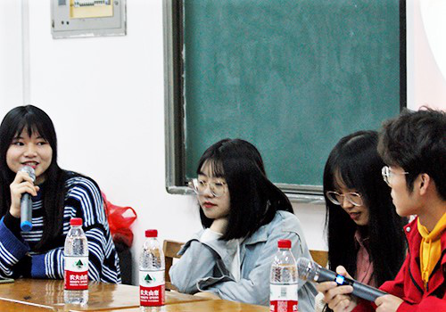 讲座伊始,团委副书记用轻松幽默的话语营造了一个愉悦的氛围,引入16、17级优秀学子为全体员工解疑答惑,讲述他们在校的学习感触及生活分享。