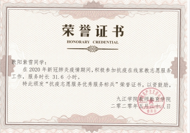 大会最后,教师bevictor伟德为全体抗疫家教志愿服务队队员及欧阳紫雪、殷甜文、卢佳丽、李丽红等11名优秀服务标兵颁发了荣誉证书,以此肯定队员们在本次活动中所做出的积极努力和贡献。