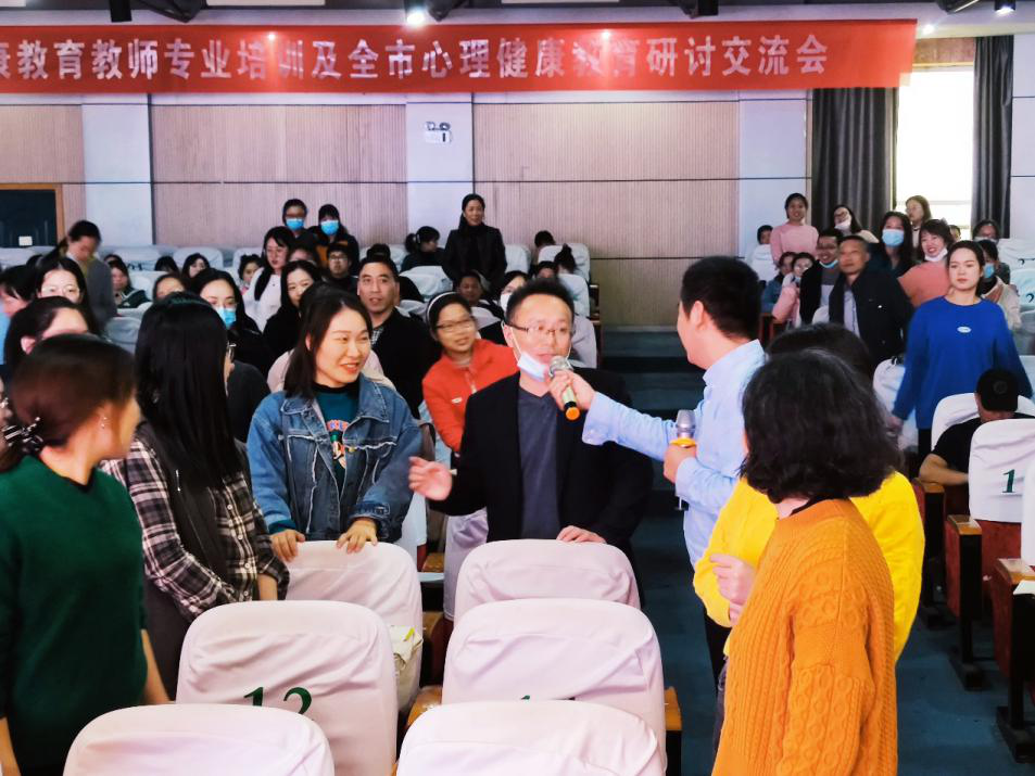 朱青博士通过“温暖你我”体验式教学开场,通过带领《颈椎操》视频练习,用揉揉肩、捶捶背、握握手、鼓鼓掌几个热身环节让参训教师彼此拉近距离。