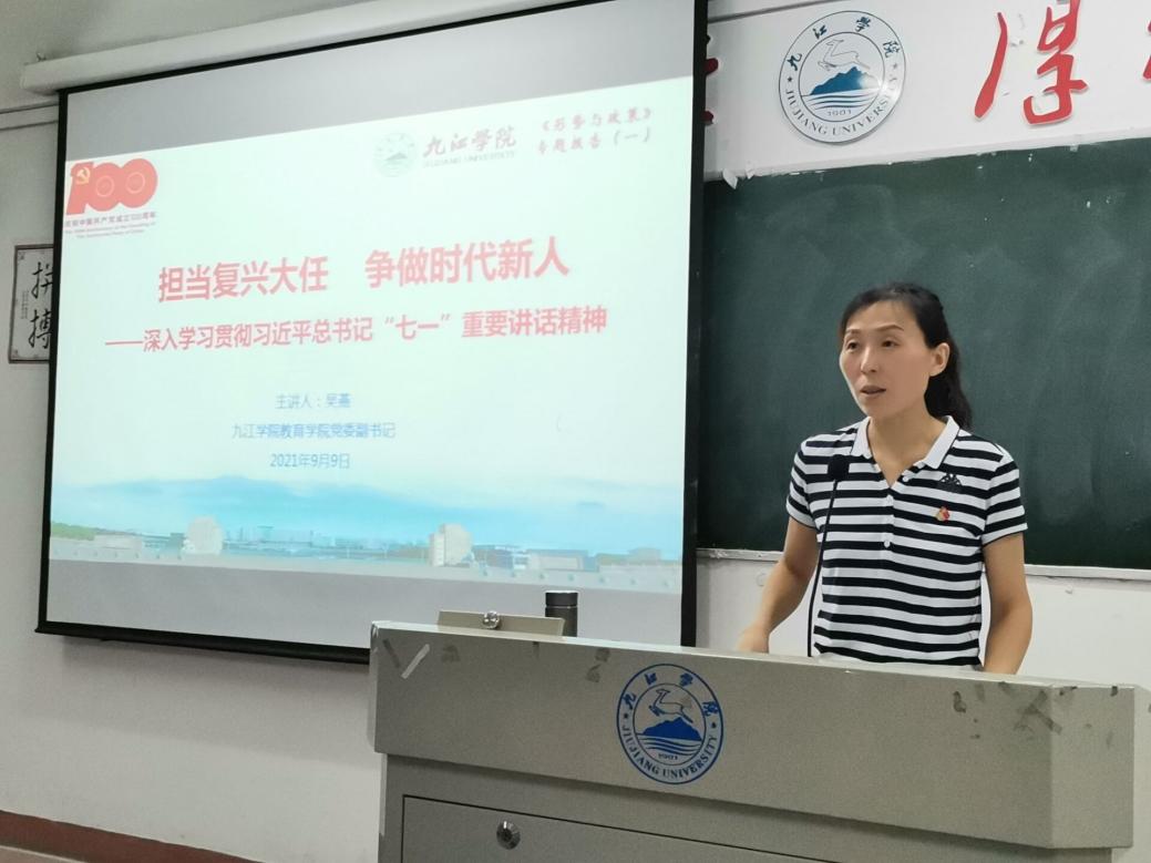 党委副书记吴燕首先向同学们介绍了bevictor伟德的发展历史和基本情况,并带领同学们学习了习近平总书记“七一”重要讲话精神,回顾了建党百年的辉煌成就,她希望同学们以青春之我、奋斗之我,为民族复兴铺路架桥,为祖国建设添砖加瓦。