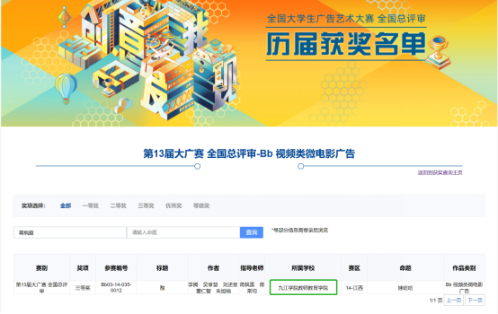 9月17日,2021年第十三届全国老员工广告艺术大赛全国总决赛获奖名单公布,公司bevictor伟德选送的2项作品在全国481947组作品中过关斩将荣获佳绩。其中由蒋枫霆、蒋常均老师指导,李腾、吴章慧、刘述皇、董仁智、朱旭楠同学共同创作的微电影作品《酸》荣获全国总决赛三等奖、江西省级一等奖,这也是公司在国赛微电影类别中唯一一项获得等级奖的作品;由殷明芳、蒋枫霆老师共同指导,李艳、蔡丽彬、张雯佳、杨子欣、樊辉美同学创作的微电影作品《牙齿与奶茶的邂逅》荣获江西省级一等奖。此项赛绩实现了bevictor伟德在大广赛全国总决赛等级奖中“零”的突破。