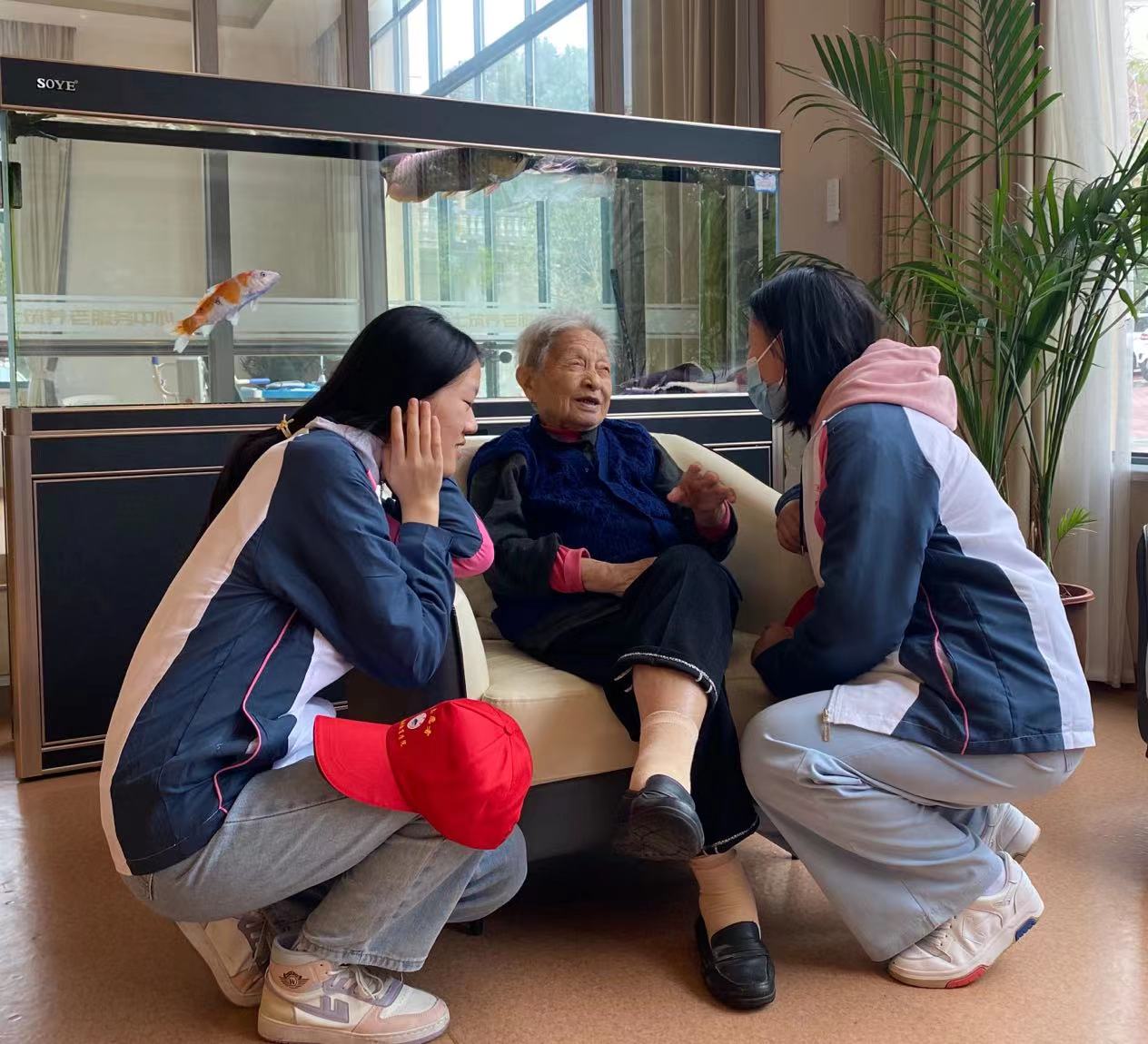 在一楼娱乐活动区,志愿者们热情大方地和老人聊天交谈,把他们当成自己家的老人一般谈心;志愿者们还陪老人下象棋,打麻将,教他们用智能机,感受新旧思想的融合与碰撞。二楼的志愿者则为老人们打扫卫生、整理内务,帮助老人们剪指甲剃胡子,还有志愿者在一旁唱歌给爷爷奶奶们听,现场氛围十分融洽和谐。在志愿者的陪伴下,老人们的脸上一直洋溢幸福欣慰的笑容,对我们后辈给予重望。