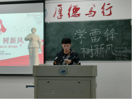 主题团日活动中,各班团支书通过讲述雷锋同志生平及其先进事迹,和同学们充分讨论如何学习雷锋的“钉子精神”,大家重温着雷锋歌曲、诵读雷锋日记、寻找着身边的雷锋等形式开展多样、生动的主题团日活动。