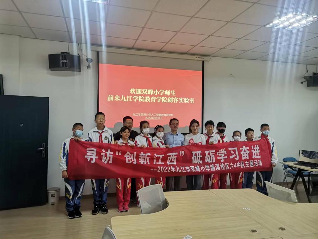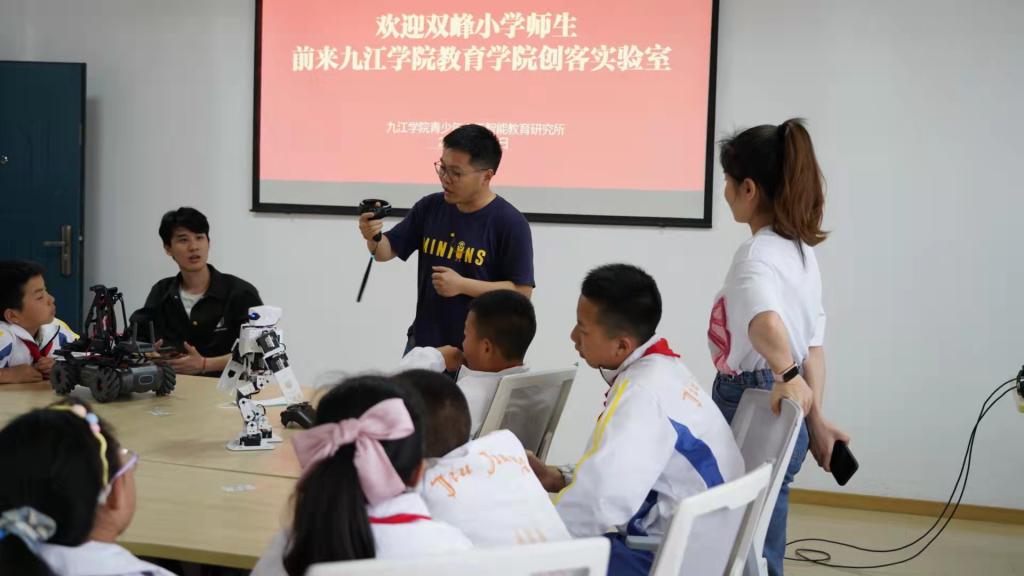 5月8日下午,bevictor伟德邀请九江市双峰小学少年儿童社会实践营来到创客实验室,开展“寻访创新江西砥砺学习奋进”主题活动。教育技术教研室主任、青少年人工智能研究中心负责人张立龙博士、实验实训中心蒋枫霆主任为活动提供了专场指导。