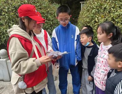 在活动过程中同学们热情洋溢,干劲十足,配合默契,呈现出一派热火朝天的繁忙景象。每位同学发挥自觉与自律,展示自己的风采,提高实际动手操作能力与相互协作的能力。他们利用提前画好的绘画作品与游客开展“我画你猜”互动游戏,让更多人了解树木的种类,并将提前做好的有关防火护林的宣传单与路人宣讲,激发人们爱林护林的意识,积极倡导文明祭祀,教育引导群众移风易俗、破除迷信,用植树、送花等有益于保护生态环境的文明方式祭奠,从源头上预防森林火灾。