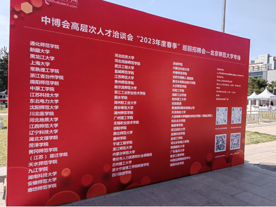 3月26日,工作组一行四人参加了“中博会高层次人才洽谈会”2023年度春季巡回招聘会北京师范大学专场。公司引才工作受到求职者的积极回应,吸引到众多毕业生关注咨询,多名优秀博士生表达近期来校实地考察签约的意愿。